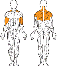 Блок для мышц спины (тяга сверху) предназначен для тренировки мышц спины. Тренажер необходим для физической подготовки спортсменов различных видов спорта, очень эффективен для увеличения ширины мышц спины, и формирования красивого телосложения. Существует несколько вариантов выполнения упражнения: тяга к груди и тяга за голову, узким, средним и широким захватами. Чем уже захват, тем меньше нагрузка на широчайшую мышцу и больше на среднюю часть спины. Соответственно чем шире захват, тем больше нагрузка на верхнюю часть широчайшей мышцы. Тренажер снабжен регулируемым по высоте упорным валиком для фиксирования ног.