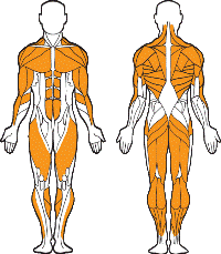 Тренировка всехгрупп мышц: верхний плечевой пояс; спина, пресс, бицепс; ноги, ягодицы.